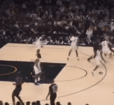 骑士沉退时,直接借上线掩护绕柱三分;骑士扩防,借艾顿和海耶斯的顺下掩护钻篮下。骑士换防,他就去点米球。就是玩。